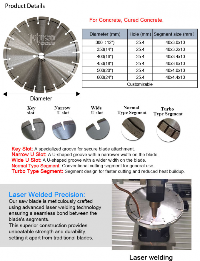 1. وصف شفرة المنشار الماسية الصامتة 500 مم مع عمر طويل لقطع الخرسانة المعالجة
